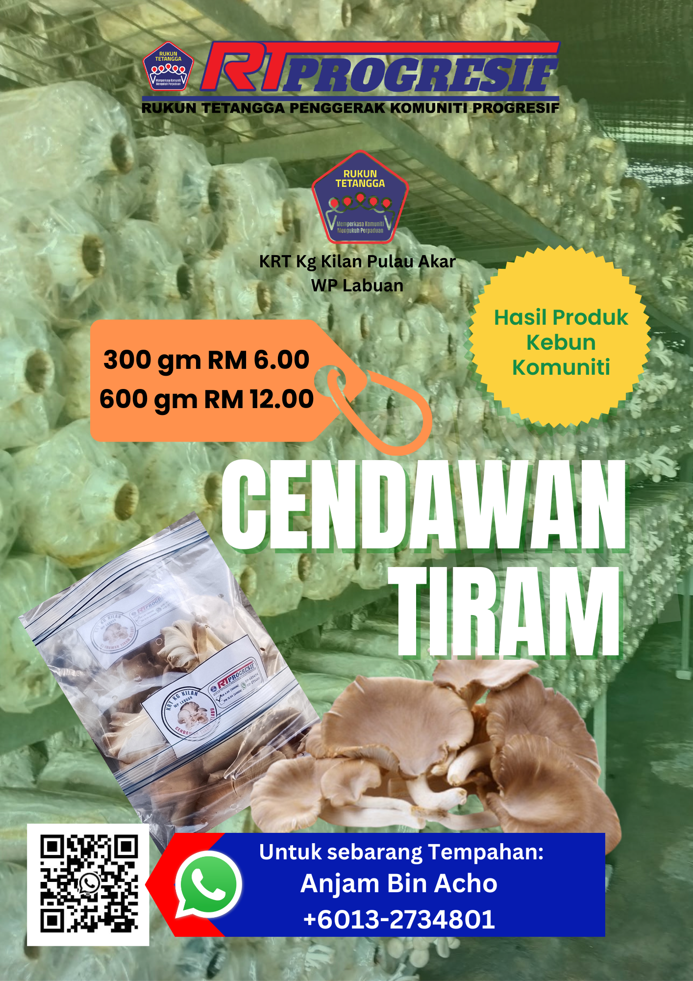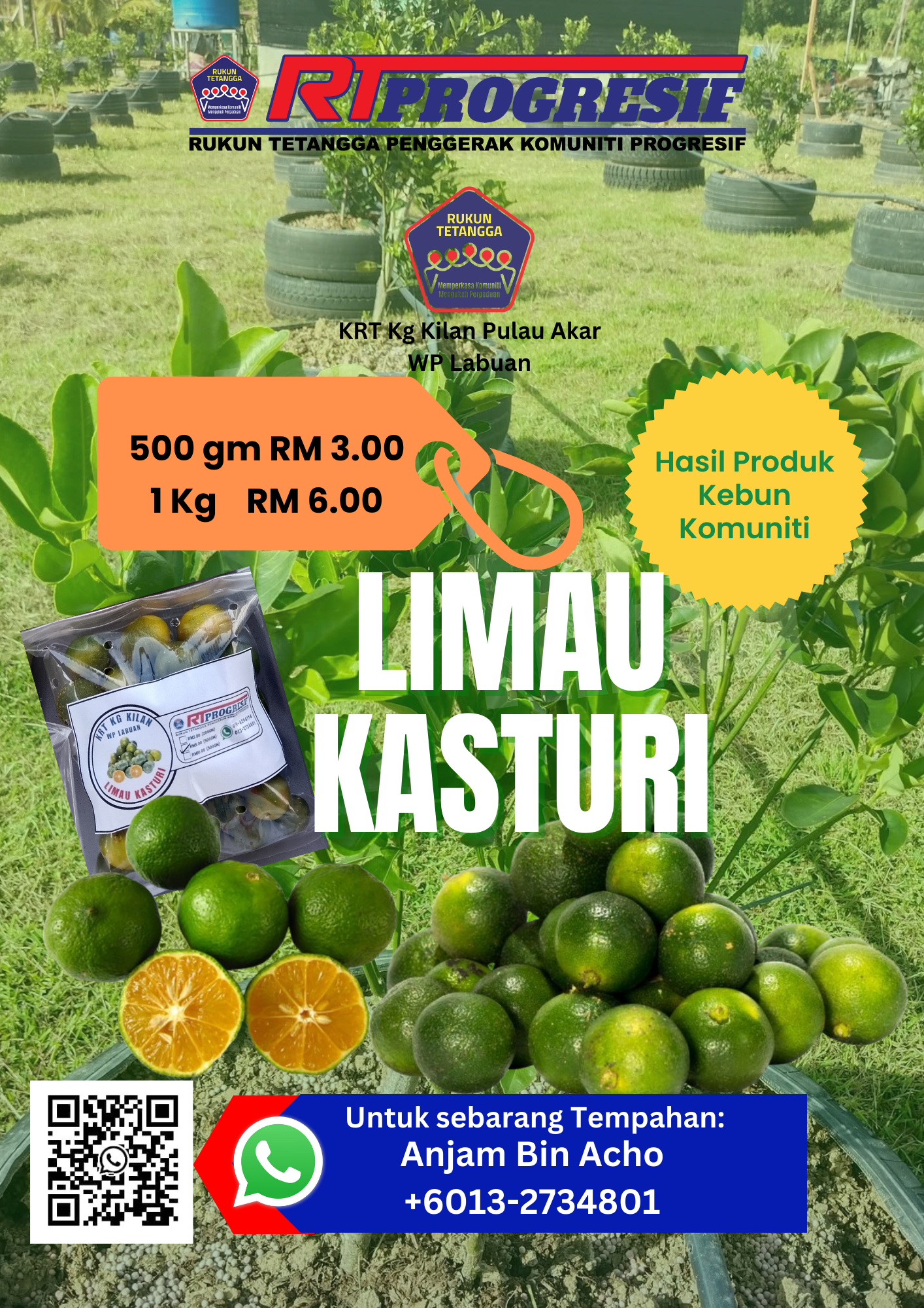 Projek kebun komuniti KRT Kg. Kilan Pulau Akar mula dilaksanakan seawal tahun 2016, di tanah lapang kawasan balai raya Kg. Kilan dengan keluasan 2 ekar. Di atas tanah milik Perbadanan Labuan. Jenis tanaman pelbagai sayur-sayuran, cendawan tiram & tanaman limau kasturi